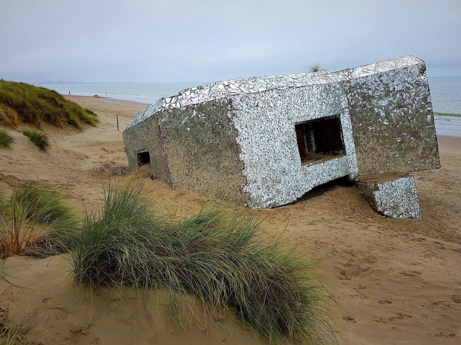 wordt het met een enorme bunker beplakt met stukjes spiegel. In Leffrinckoucke,